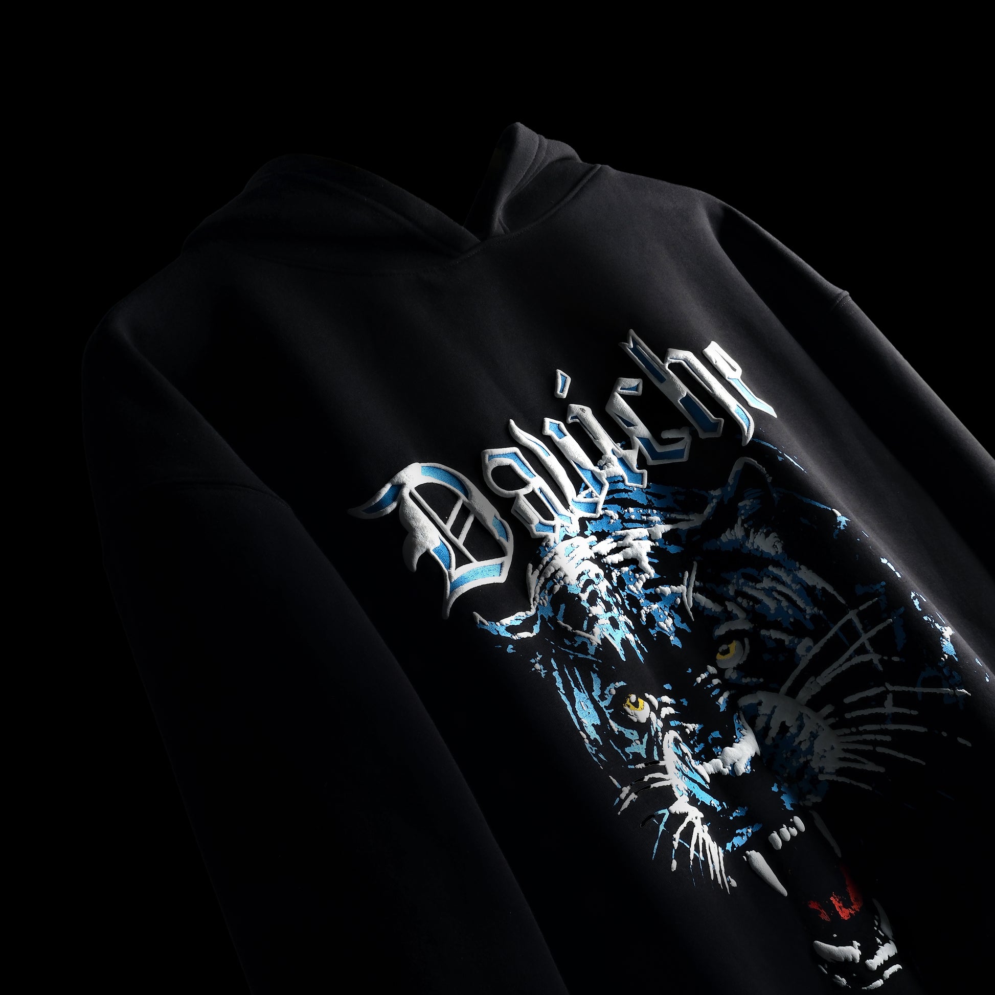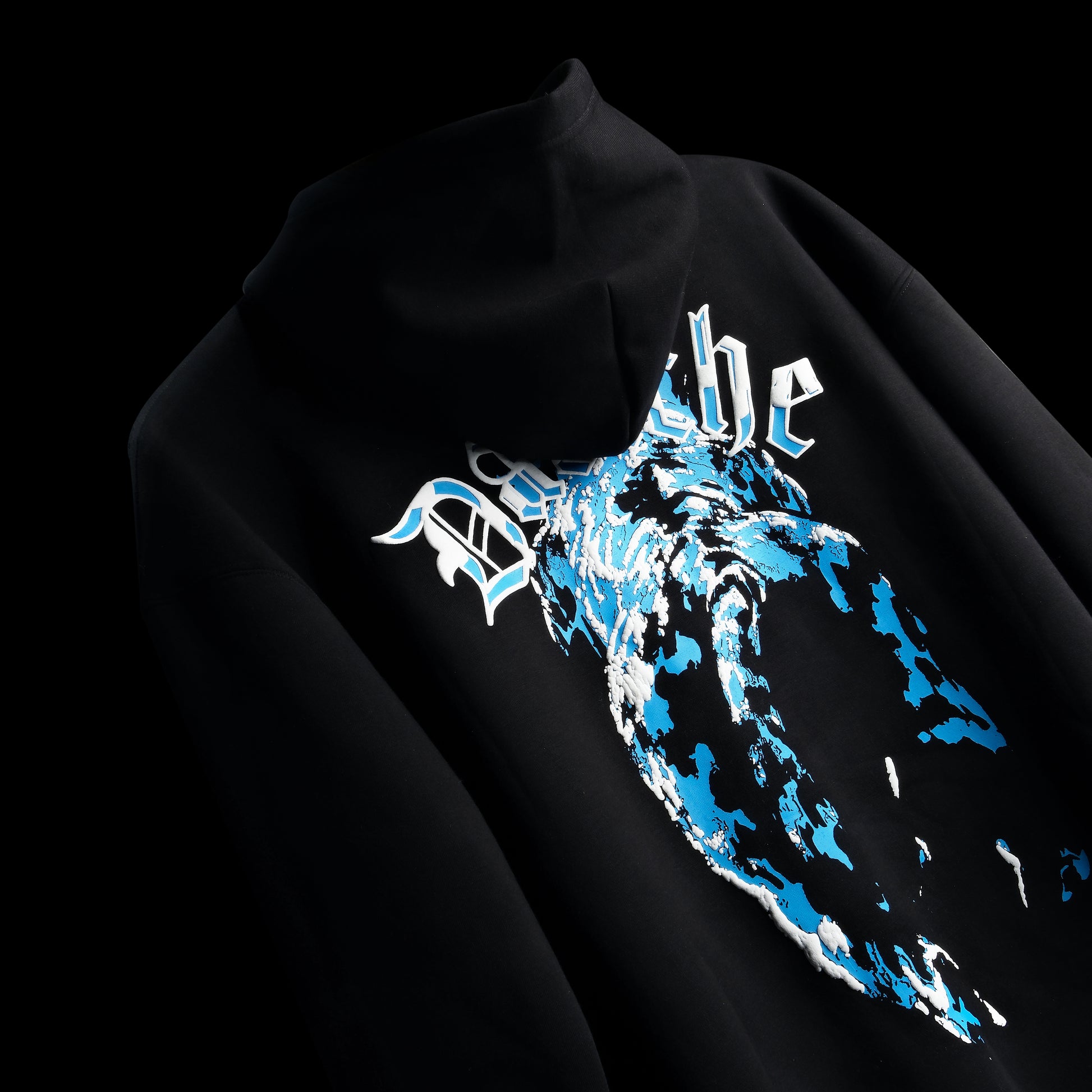 The DAVICHE’s blue predator hoodie unleash the wild side featuring an electrifying 3D visual of an attacking blue panther. The front side showcases the panther’s fierce, forward-facing stance in a dynamic screen and puff print that creates a striking, raised texture. On the back, the powerful rear of the panther continues the story, adding a unique, seamless design that wraps around the entire hoodie. Made from high-quality cotton, this hoodie offers both comfort and style, combining premium street-wear aesthetics with eye-catching detail. A statement piece for those who want to stand out.